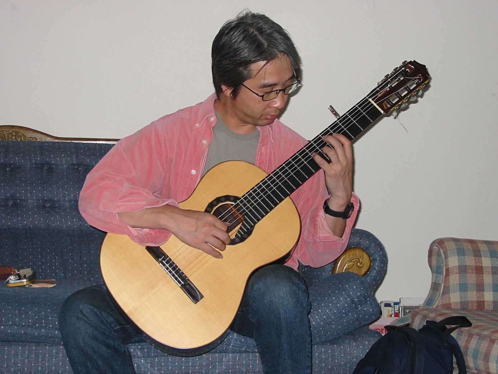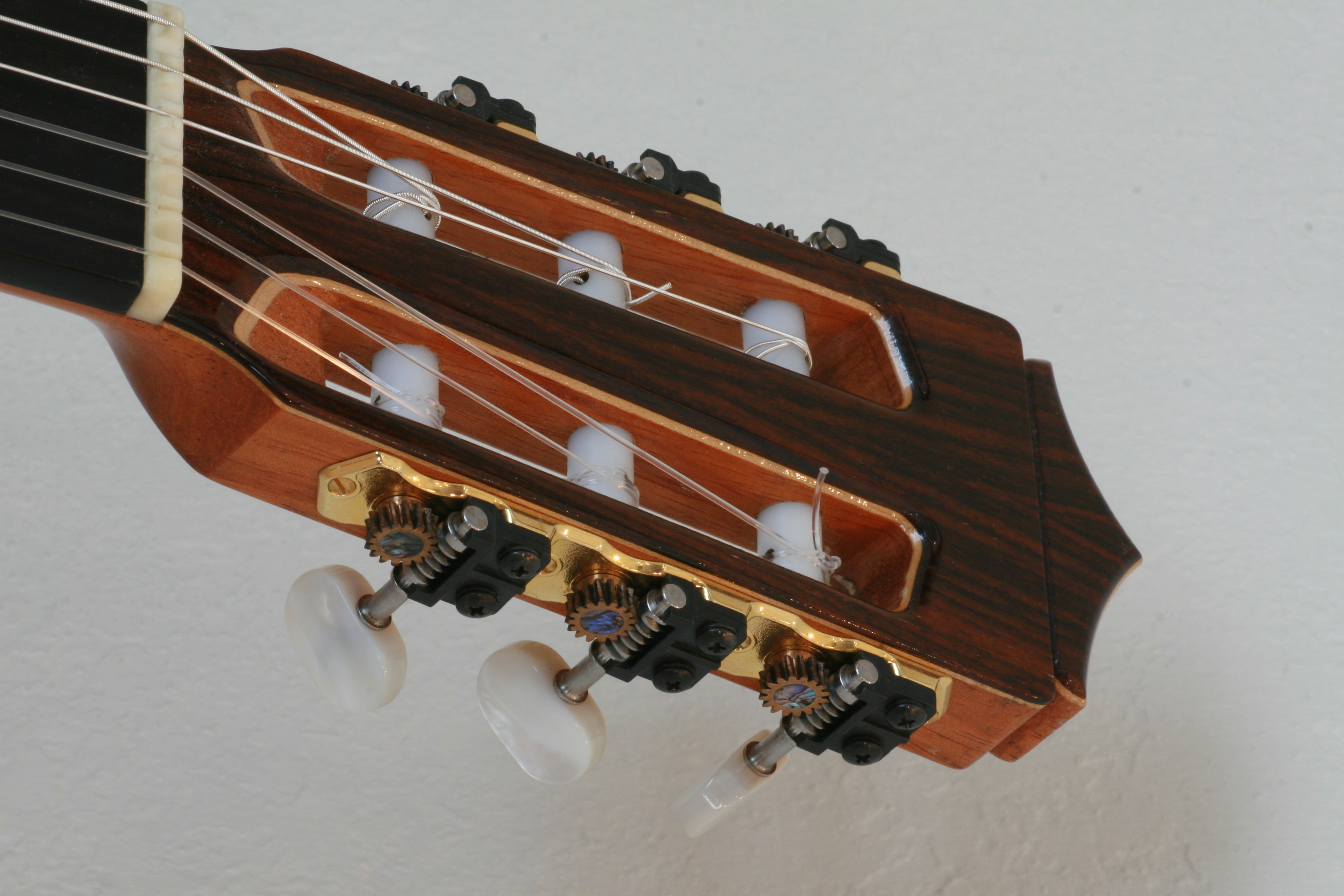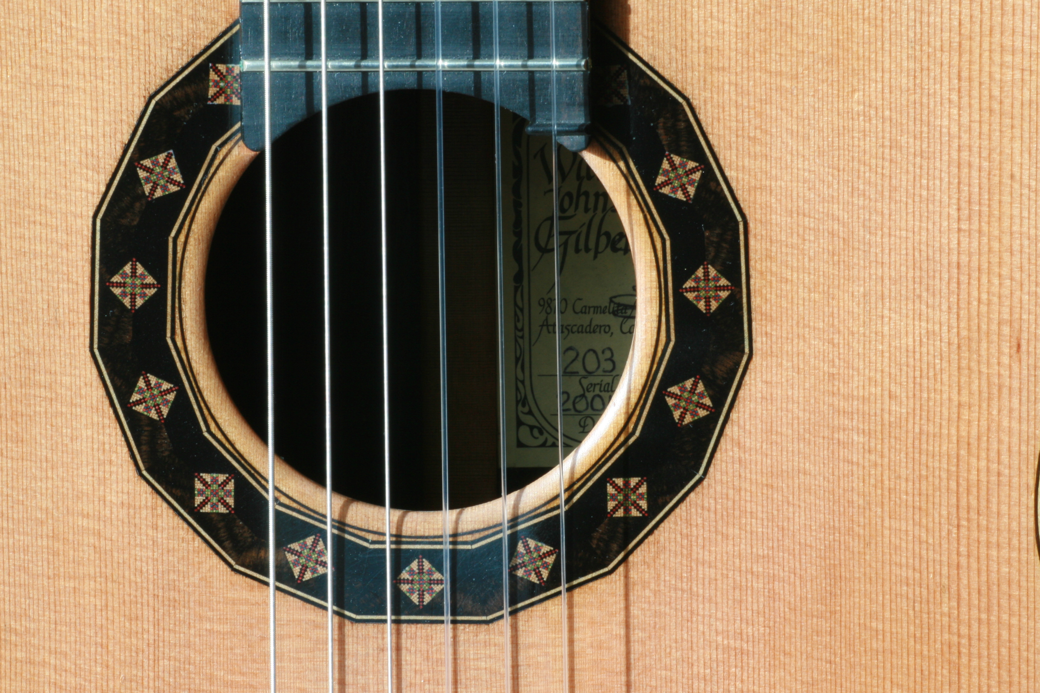 Photo Gallery Cutaway Rosette detail No. 203 20th Fret Detail 6-String Head Closeup 6-String Head Closeup 6-String Upper Face and Fretboard 6-String Head Closeup 6-String Neck 6-String Heel closeup 6-String Upper Face, Fretboard and Heel 6-String Rear of Head 6-String Upper Face, Fretboard and Heel 7-string Head Detail 6-String Heel Closeup 7 and 8 string instruments Lower Bout Binding Closeup 7-string face on Nut Closeup Bridge Closeup Masahiro Ojiri with his Gilbert 7-string Lower Bout Binding Closeup Tuner Detail Rosette Detail No. 203 6-String Overall Head 6-String Overall Head Rear
