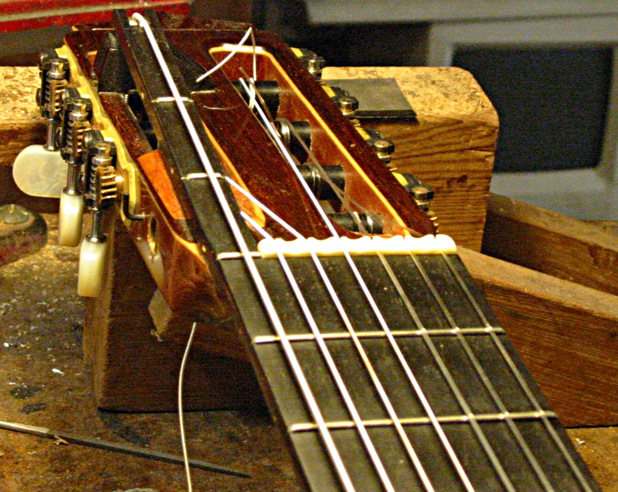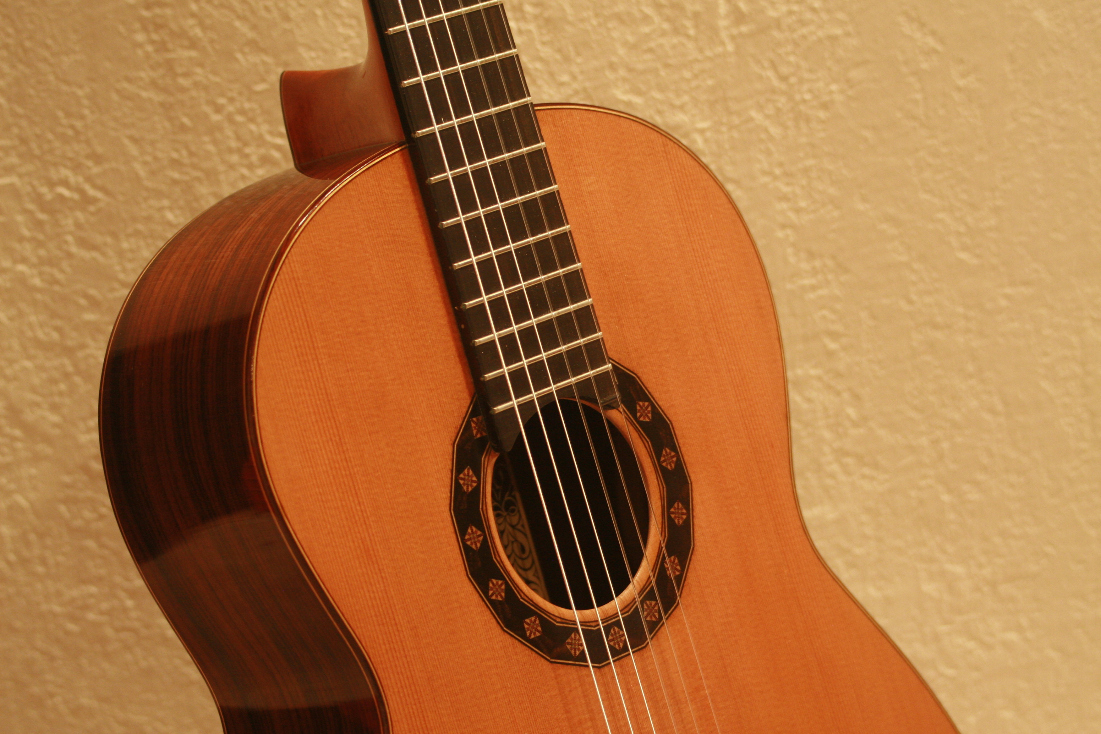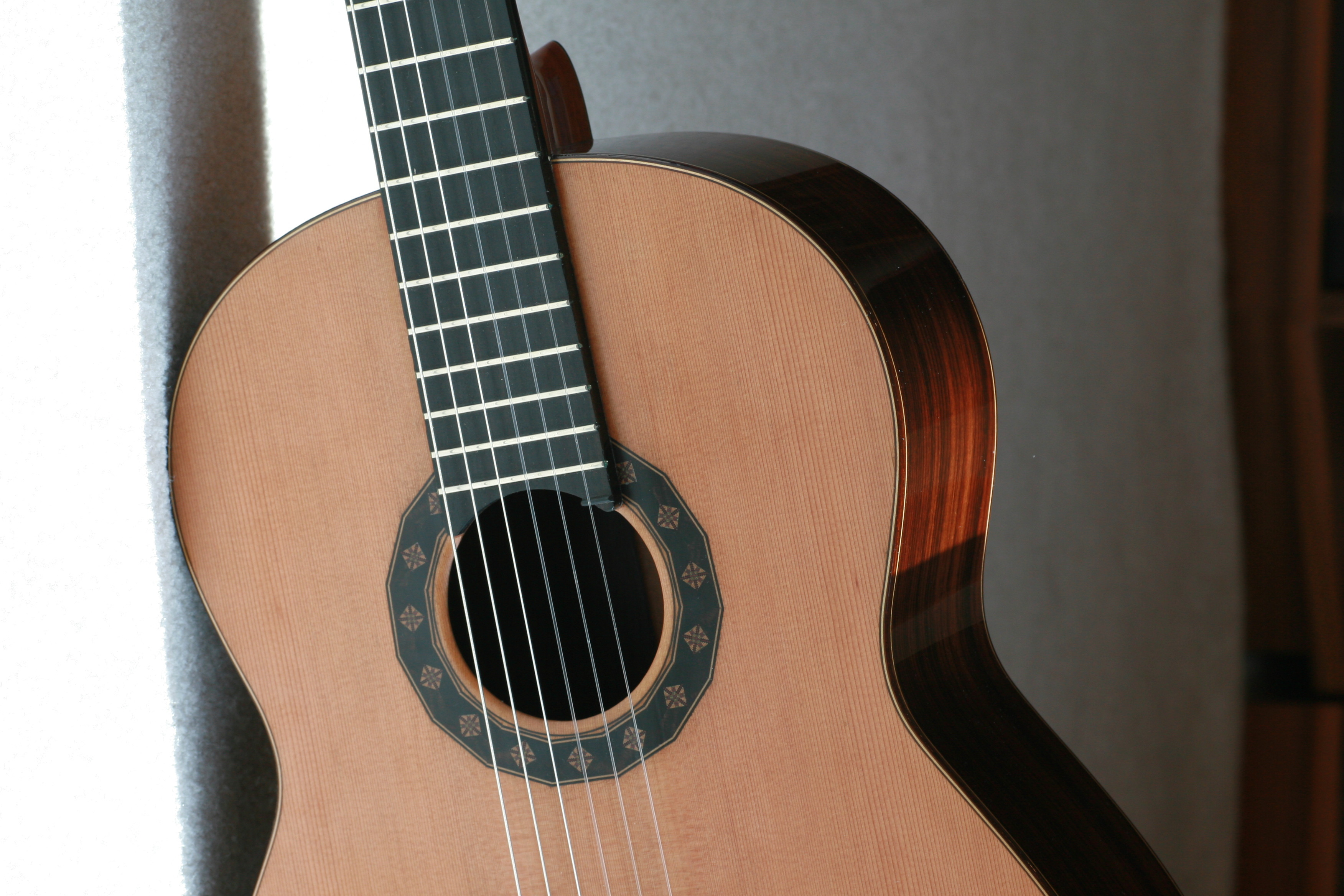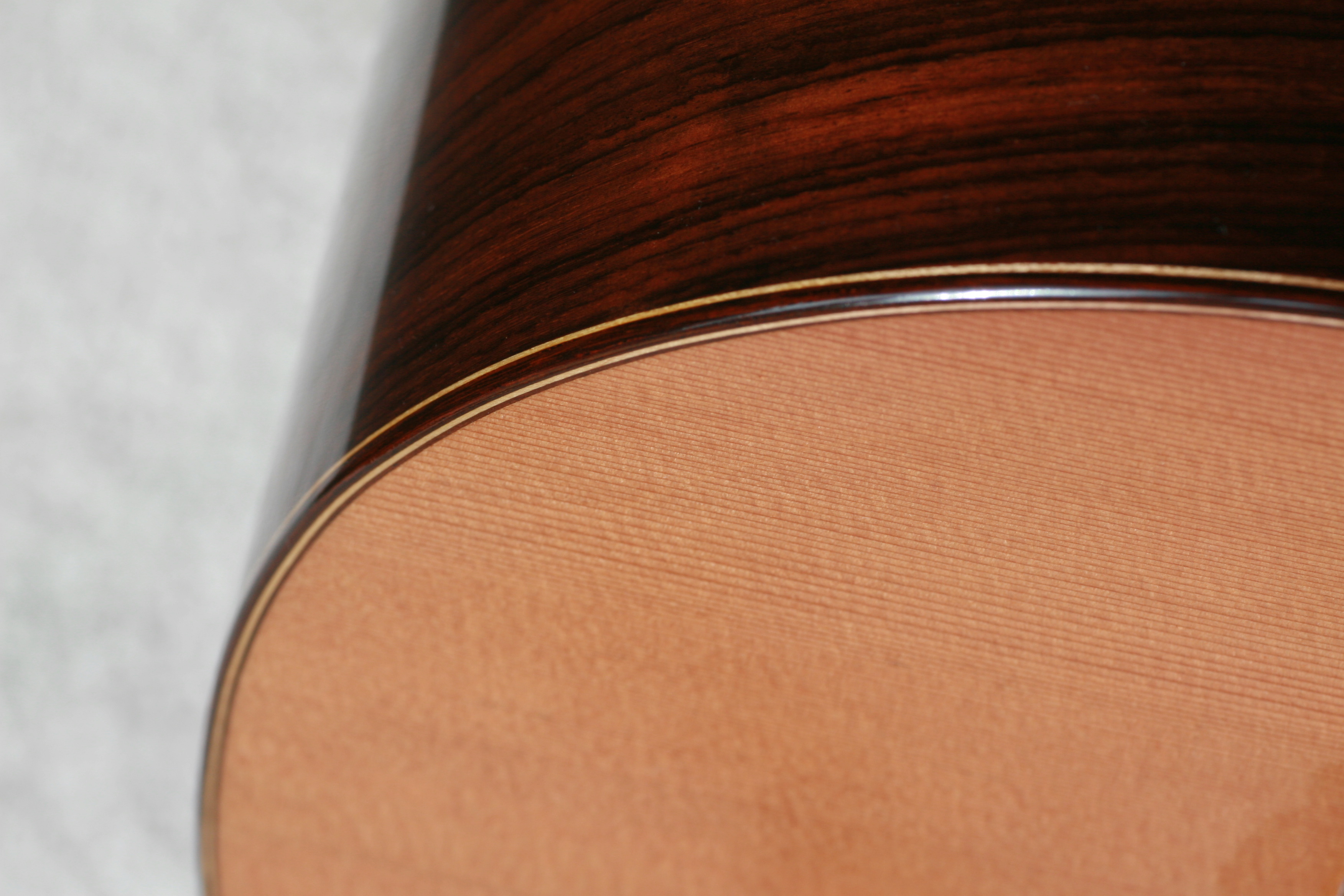 Photo Gallery Cutaway Rosette detail No. 203 20th Fret Detail 6-String Head Closeup 6-String Head Closeup 6-String Upper Face and Fretboard 6-String Head Closeup 6-String Neck 6-String Heel closeup 6-String Upper Face, Fretboard and Heel 6-String Rear of Head 6-String Upper Face, Fretboard and Heel 7-string Head Detail 6-String Heel Closeup 7 and 8 string instruments Lower Bout Binding Closeup 7-string face on Nut Closeup Bridge Closeup Masahiro Ojiri with his Gilbert 7-string Lower Bout Binding Closeup Tuner Detail Rosette Detail No. 203 6-String Overall Head 6-String Overall Head Rear